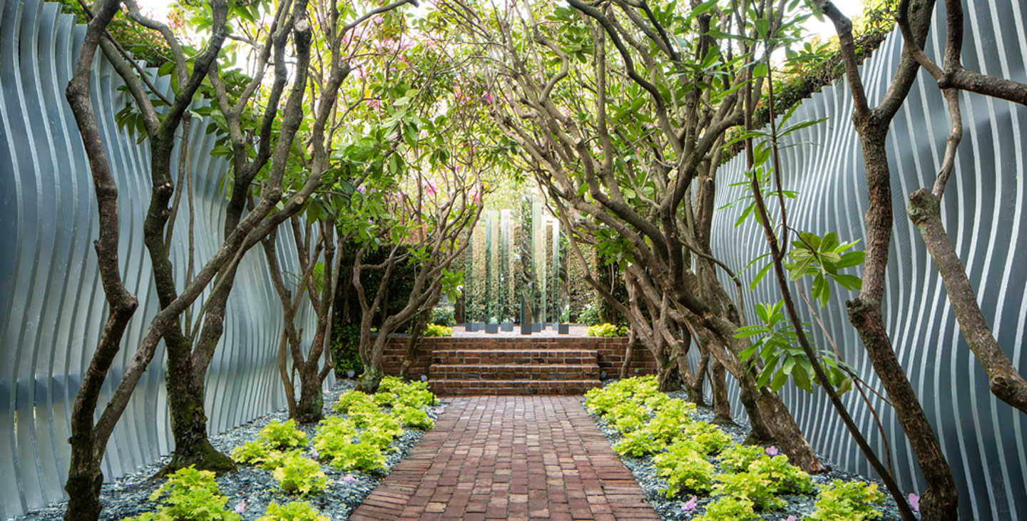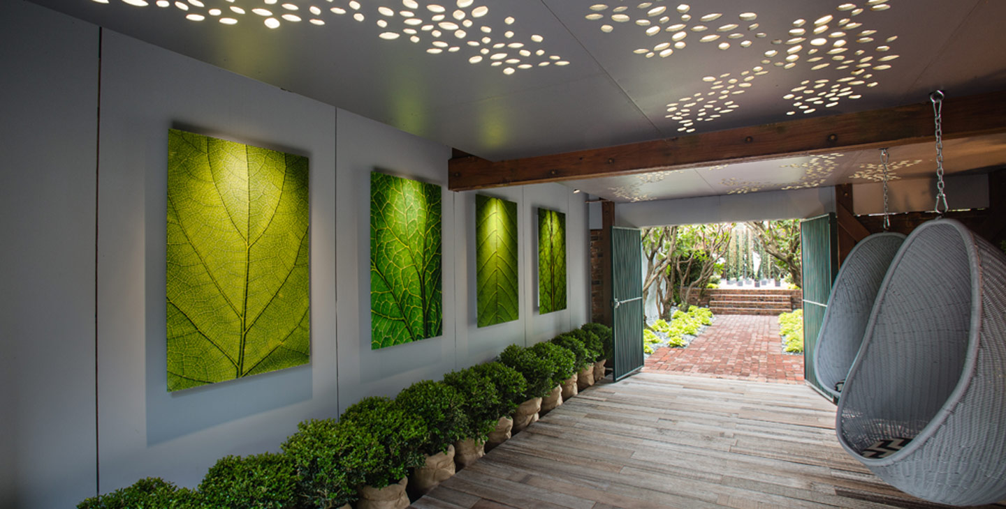 Our Designer Showcase design transformed a chicken coop and dog house into a contemplative experience by subdividing the space into four sections—each designed to represent a particular season of life.